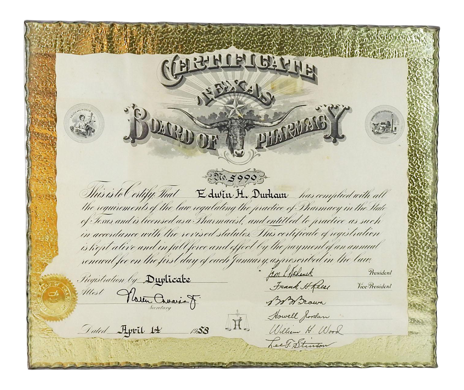 Vintage Texas Pharmacist Certificate Chairish